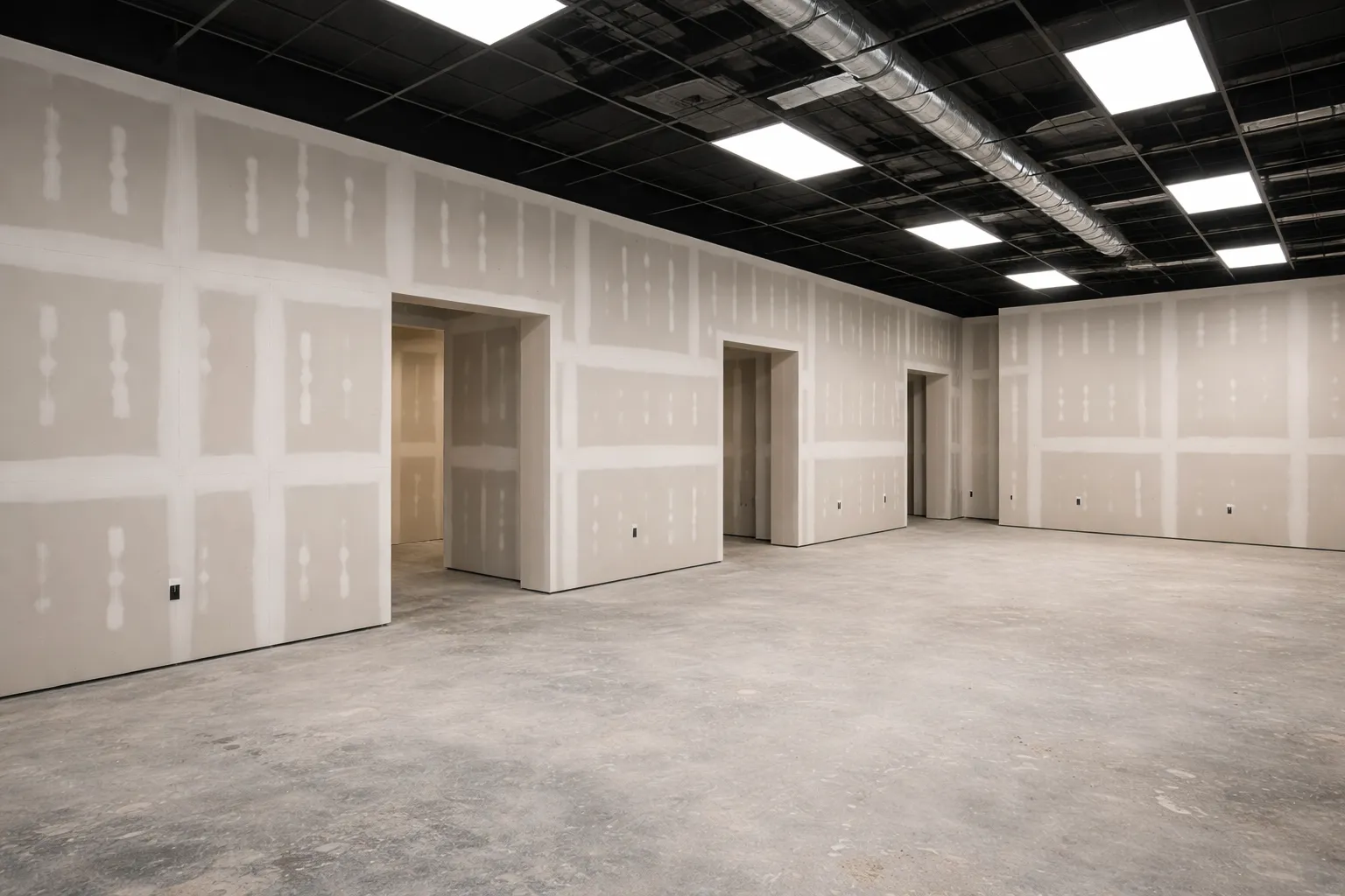 Walls and ceilings are left clean, uniform, and ready for finishing.